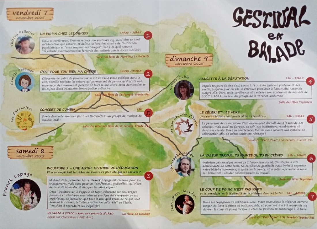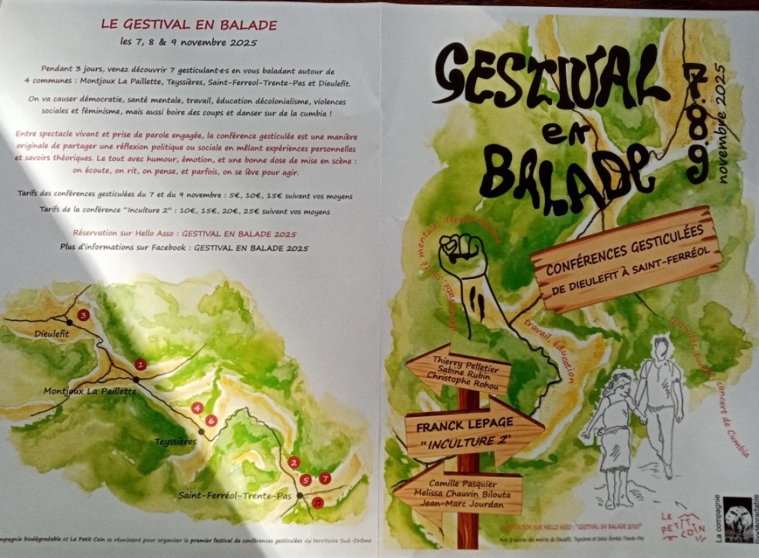 Les 7, 8 et 9 novembre, venez découvrir sept gesticulant-e-s en vous baladant autour de 4 communes : Montjoux, Teyssières, Saint Ferréol trente Pas et Dieulefit.